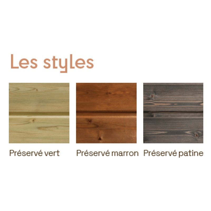 Sapin du Nord. Préservation : préservé Classe 3.1 en autoclave vert et marron. Préservation : préservé Classe 3.1 en line flow patine, à partir de composants biosourcés.4 profils claire-voie : Rythmix® Onde S 40x40 mm, Rythmix® Onde M 40x40 mm, Rythmix® Dune S 40x40 mm, Rythmix® Dune M 40x40 mm. 4 profils à emboitements : Skulpt 20x125 mm, Inter'Line 20x125 mm, Swell 20x125 mm, Canyon 20x125 mm.Surface rabotée (profils claire-voie), pose en fixation apparente. Surface en usinage 3D (profils à emboitements), rainage en bout, pose en fixation cachée. Réaction au feu : F (profils claire-voie) & D-s2, d0 (profils à emboitements).Onde S & Dune S : intervalle de 30 cm. Onde M & Dune M : intervalle de 60 cm.Conseil de l'expert : Mixez les profils Rythmix® 3D entre eux ou avec le Rythmix® Carré pour des façades uniques. Conseil de l'expert : Combinez les profils Relief 3D avec le Line ou le Pulse pour une touche d'originalité. Seule la pose verticale est recommandé pour ces 4 profils.