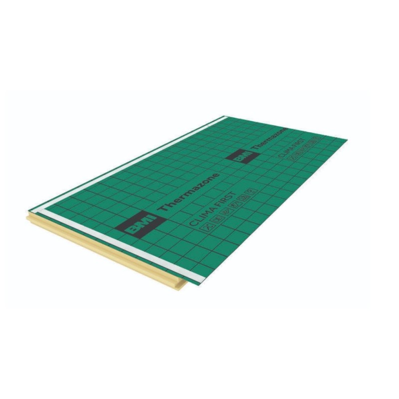 THERMAZONE CLIMA FIRST® PLUS est un panneau d'isolation en polyisocyanurate PIR pour des produits de qualité au meilleur prix. Le CLIMA FIRST® PLUS garantit une excellente étanchéité à l’eau et à l’air. - R = 6 avec une épaisseur de 130 mm - Panneaux rainurés et bouvetés qui facilitent l'assemblage tout en réduisant les ponts thermiques - L’écran HPV avec bandes adhésives intégrées assure une étanchéité à l’eau et à l’air et facilite la mise en œuvre
