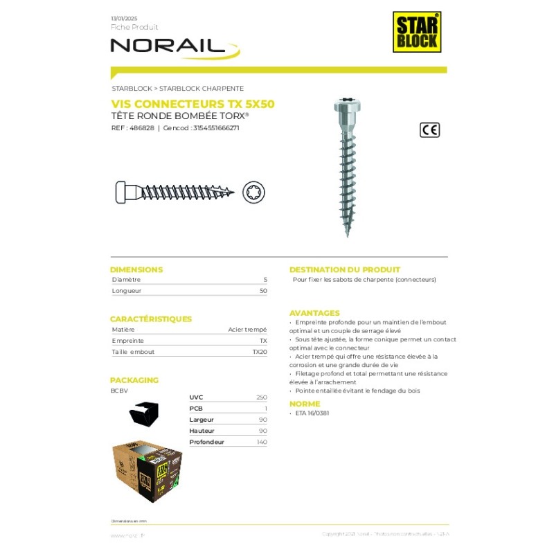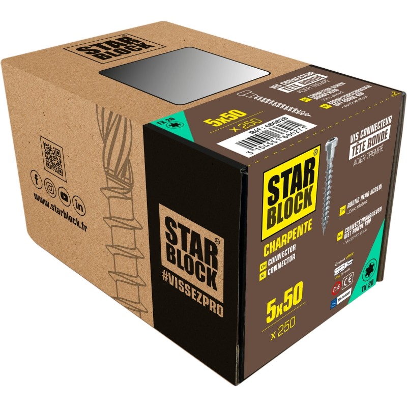 Vis pour connecteurs/sabots de charpente STARBLOCK 5x50 BC x250
